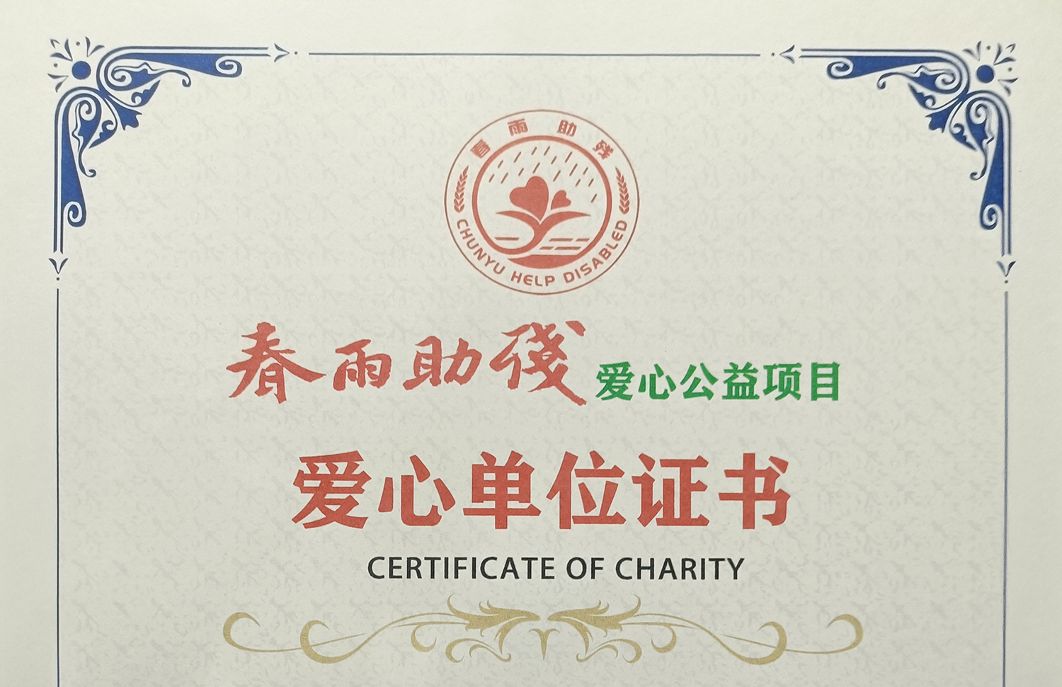 2023年5月,向“春雨助殘愛心公益項目”捐贈愛心資金