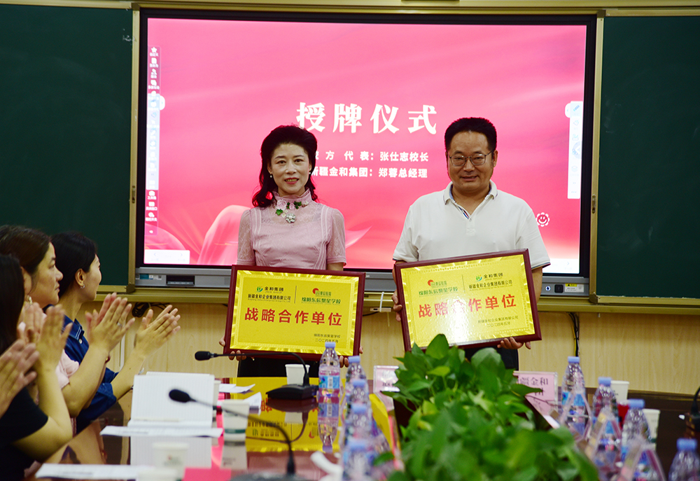 5月28日,在東辰聚星學(xué)校,金和集團(tuán)與該校正式簽訂了戰(zhàn)略合作協(xié)議,雙方將在黨建聯(lián)建、研學(xué)共享、教育咨詢、購(gòu)房?jī)?yōu)惠等領(lǐng)域深度合作。東辰聚星學(xué)校校長(zhǎng)張仕志,黨支部書記、副校長(zhǎng)兼初中部校長(zhǎng)彭必榮,副校長(zhǎng)兼小學(xué)部校長(zhǎng)申曉敏,副校長(zhǎng)兼學(xué)生發(fā)展中心主任譚虎;金和集團(tuán)總經(jīng)理鄭蓉,副總經(jīng)理任磊等領(lǐng)導(dǎo)出席活動(dòng)并見證簽約。