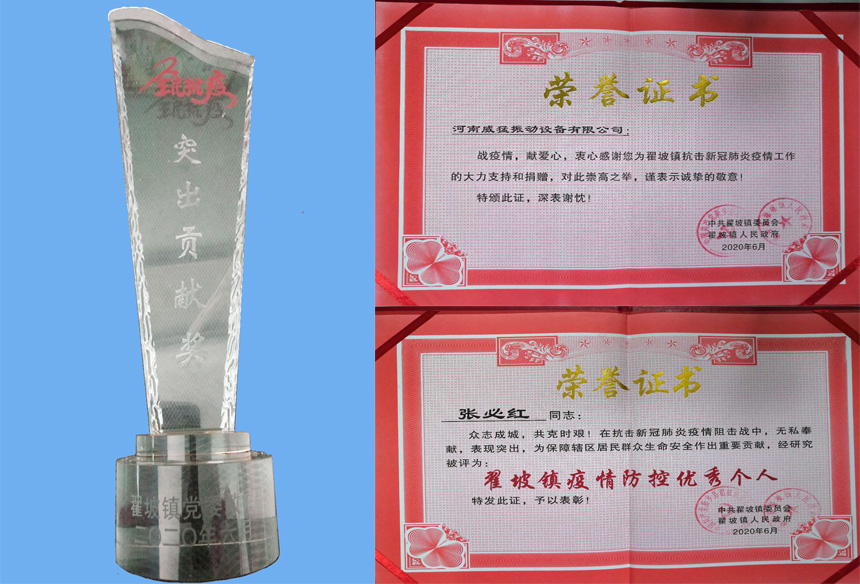 SEE MORE2020年6月25日上午,中共翟坡鎮(zhèn)委員會和翟坡鎮(zhèn)人民政府為抗擊疫情捐款捐物的愛心企業(yè)及個人舉行頒獎儀式,為河南威猛振動頒發(fā)了“榮譽(yù)證書”、...