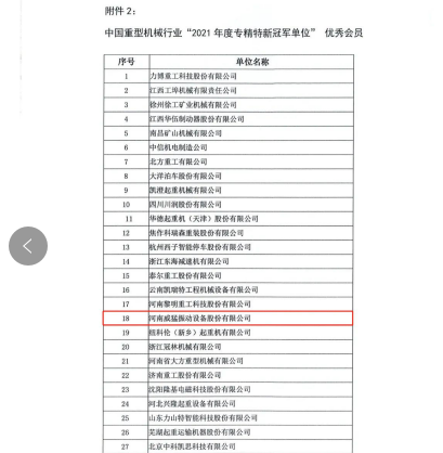 SEE MORE6月13日,中國重型機(jī)械工業(yè)協(xié)會發(fā)布了“2021年度會員單位”入圍授獎企業(yè)名單,河南威猛振動榮獲中國重型機(jī)械行業(yè)“2021年度專精特新單位”。公司長期以來...