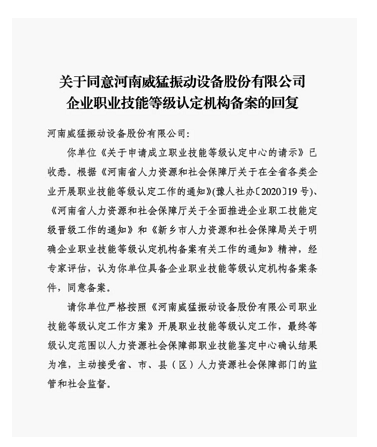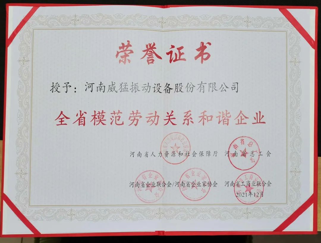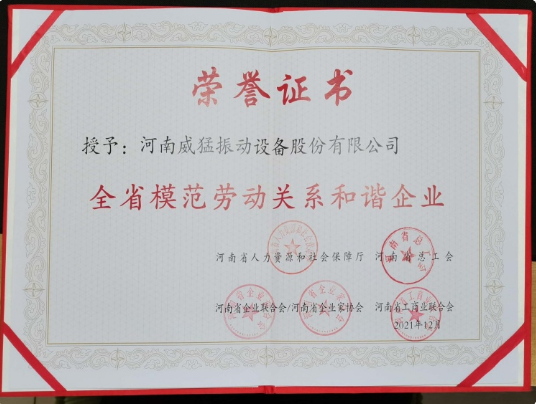 SEE MORE2022年7月,河南威猛振動設(shè)備股份有限公司被河南省人力資源和社會保障廳、河南省總工會、河南省企業(yè)聯(lián)合會/河南省企業(yè)家協(xié)會及河南省工商業(yè)聯(lián)合會授予“全省模范勞動關(guān)系和諧企業(yè)”榮譽(yù)稱...