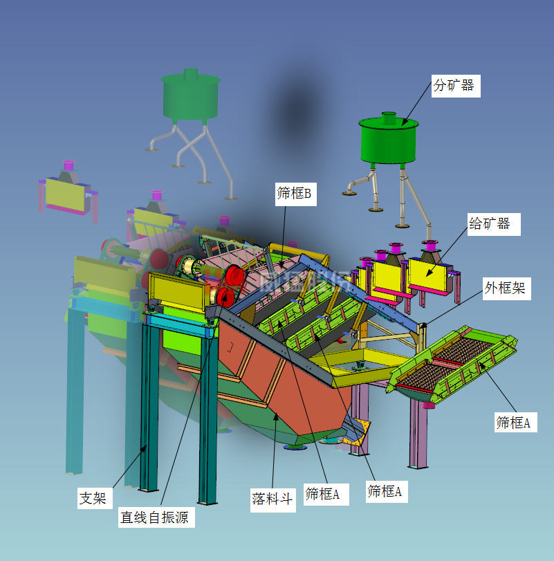 SEE MORE分布篩-Z,又稱直線篩,其原理為利用振動電機激振作為振動源,使物料在篩網(wǎng)上被拋起,同時向前作直線運動,物料均勻地進入篩分機的進料口,通過多層篩網(wǎng)產(chǎn)生數(shù)種規(guī)格的篩上物、篩下物、分別從...